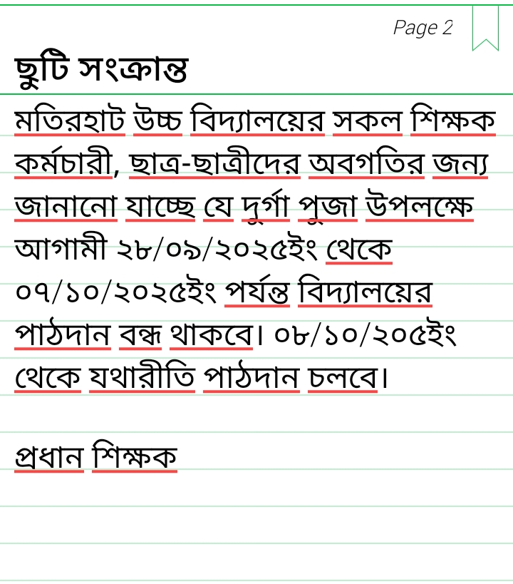 ছুটি সংক্রান্ত নোটিশ |